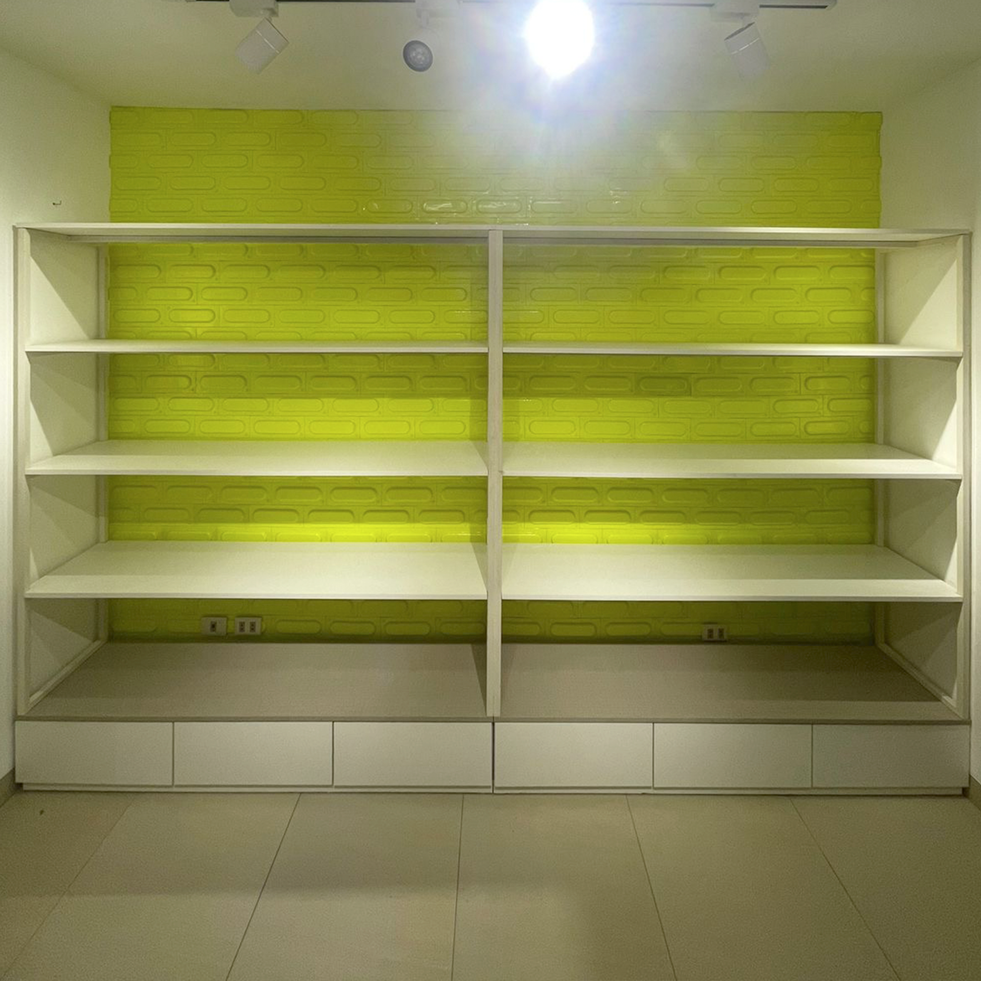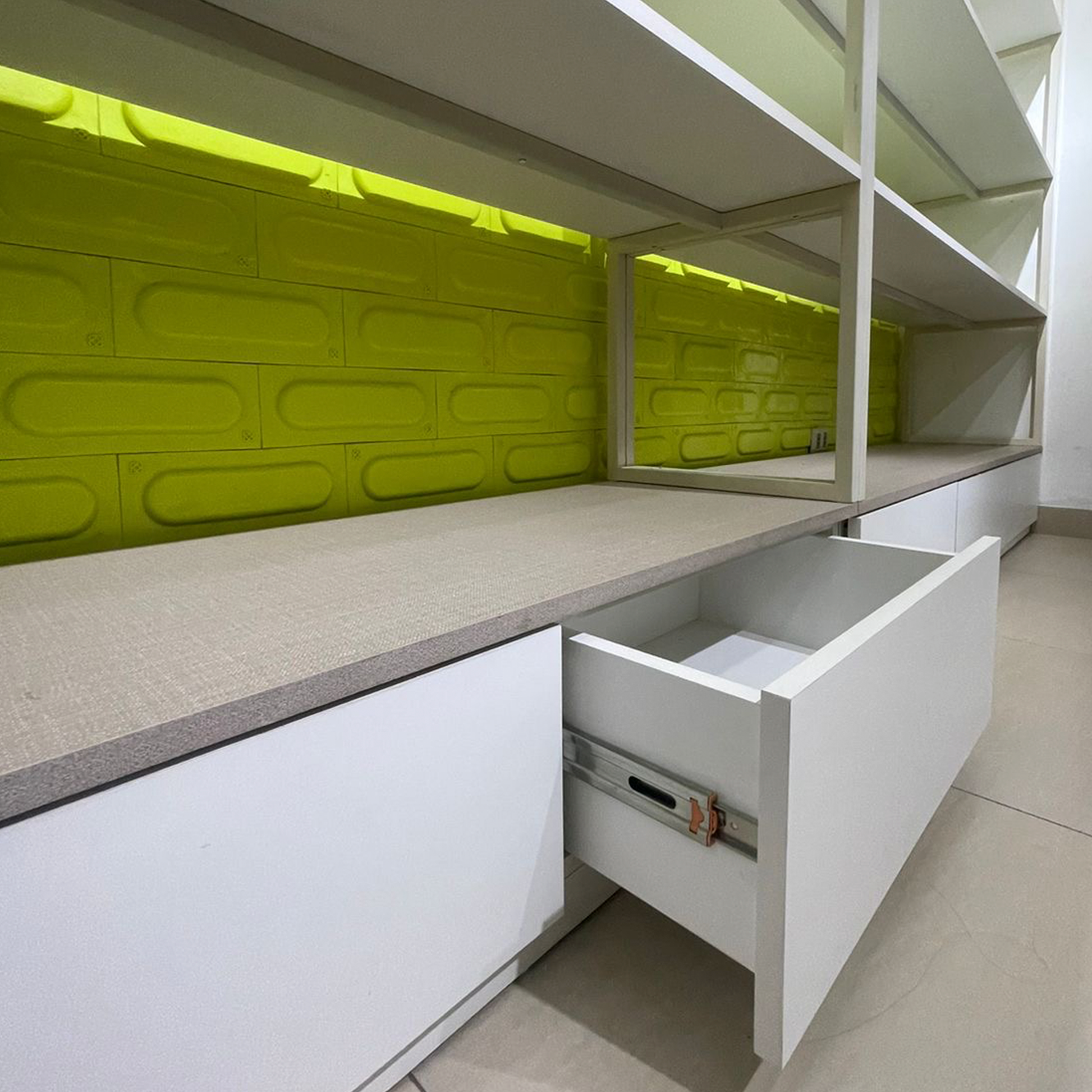 Estante de Melamina y estructura de fierro Cajoneros de push en la parte inferior Estante doble, de dos cuerpos desmontable. Dos años de uso con bajo tráfico