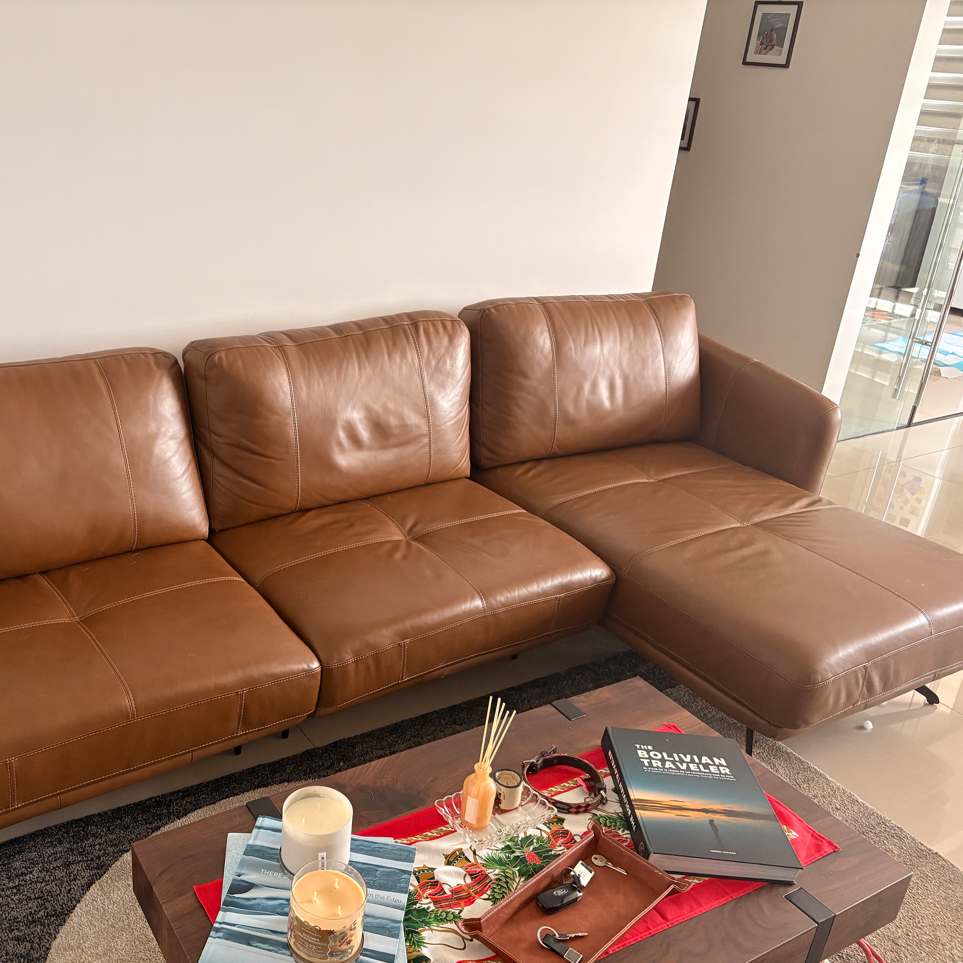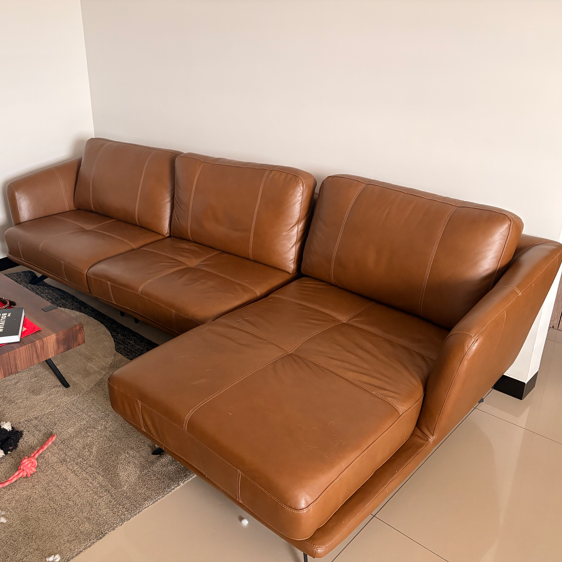 Hermoso sofá en L izquierdo de 3 cuerpos cuero color capuccino marca Toro Bianco con menos de 8 meses de uso en excelente estado comprado en Multicenter.